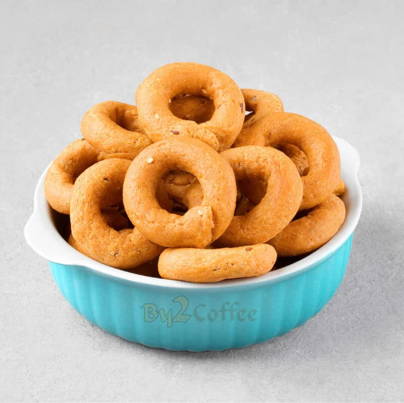 Gram flour, Rice Flour, Corn Flour, Groundnut, Red Chilli Powder, Garlic,Edible vegetable Oil, Jeera, Curry leaves, Asafoetida and salt.